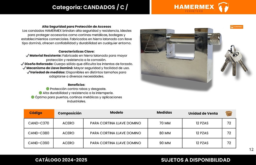 CANDADO PARA CORTINA LLAVE DOMINO 80MM
