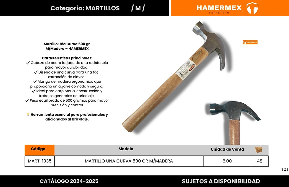MARTILLO UÑA CURVA 500 GR M/MADERA